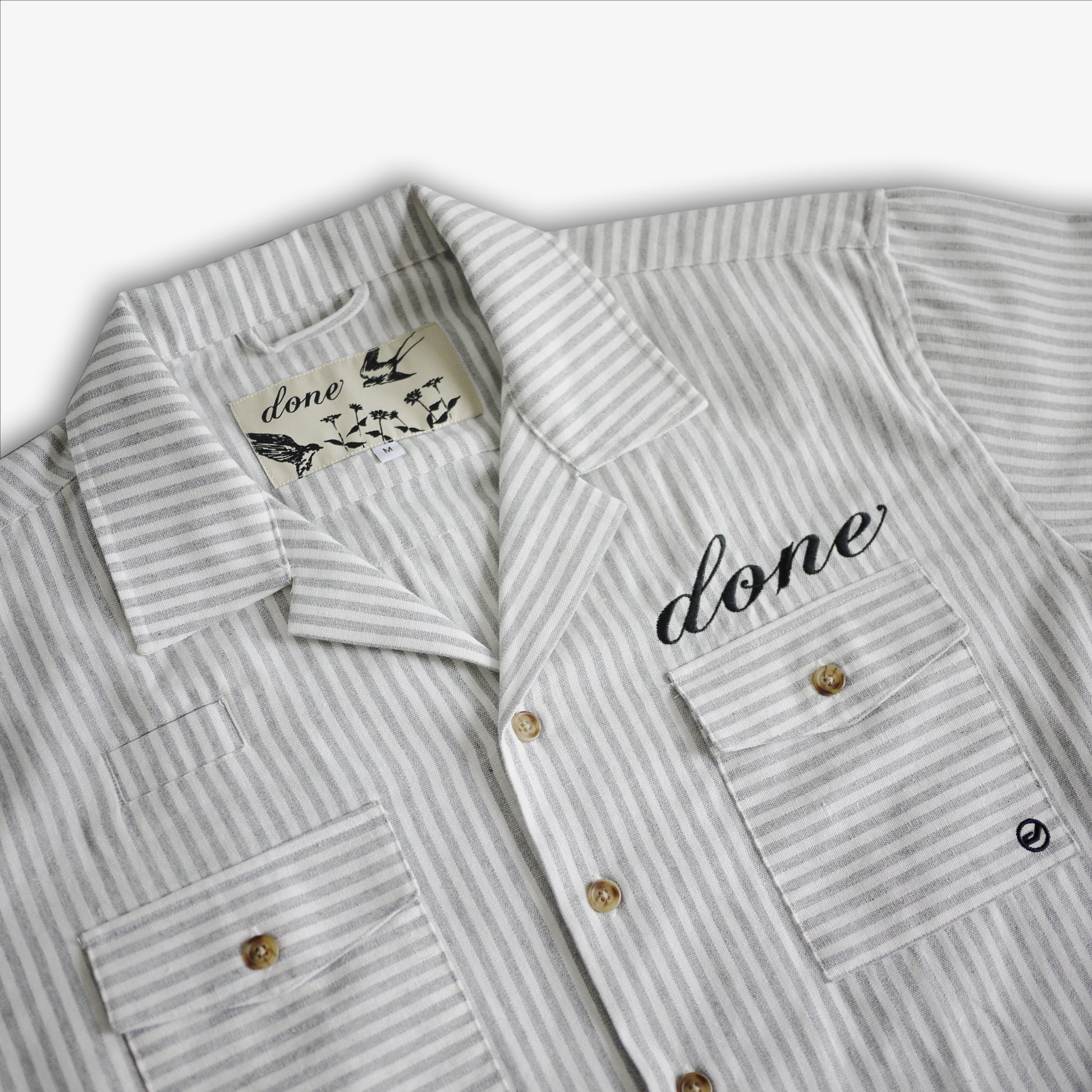 Crafted from a rich blend of 50% cotton and 50% linen, this piece offers a substantial yet breathable feel — striking the perfect balance between structure and comfort. Thoughtfully designed with utility in mind, it features discreet details like a lighter pocket and a belt loop for keys, seamlessly blending practicality with refined style. A collar hook placed just above the tag allows for effortless hanging, preserving the garment’s shape and elegance. As an added touch of exclusivity, the first 40 orders will arrive with Tsuno bags — perfect to hold all your trinkets and doodads in style.